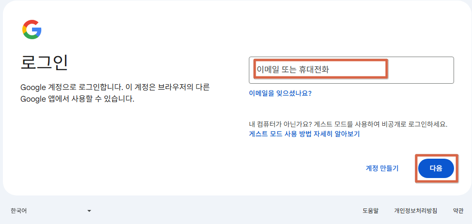 - 서비스 약관 및 개인정보 보호 정책 확인 후 동의